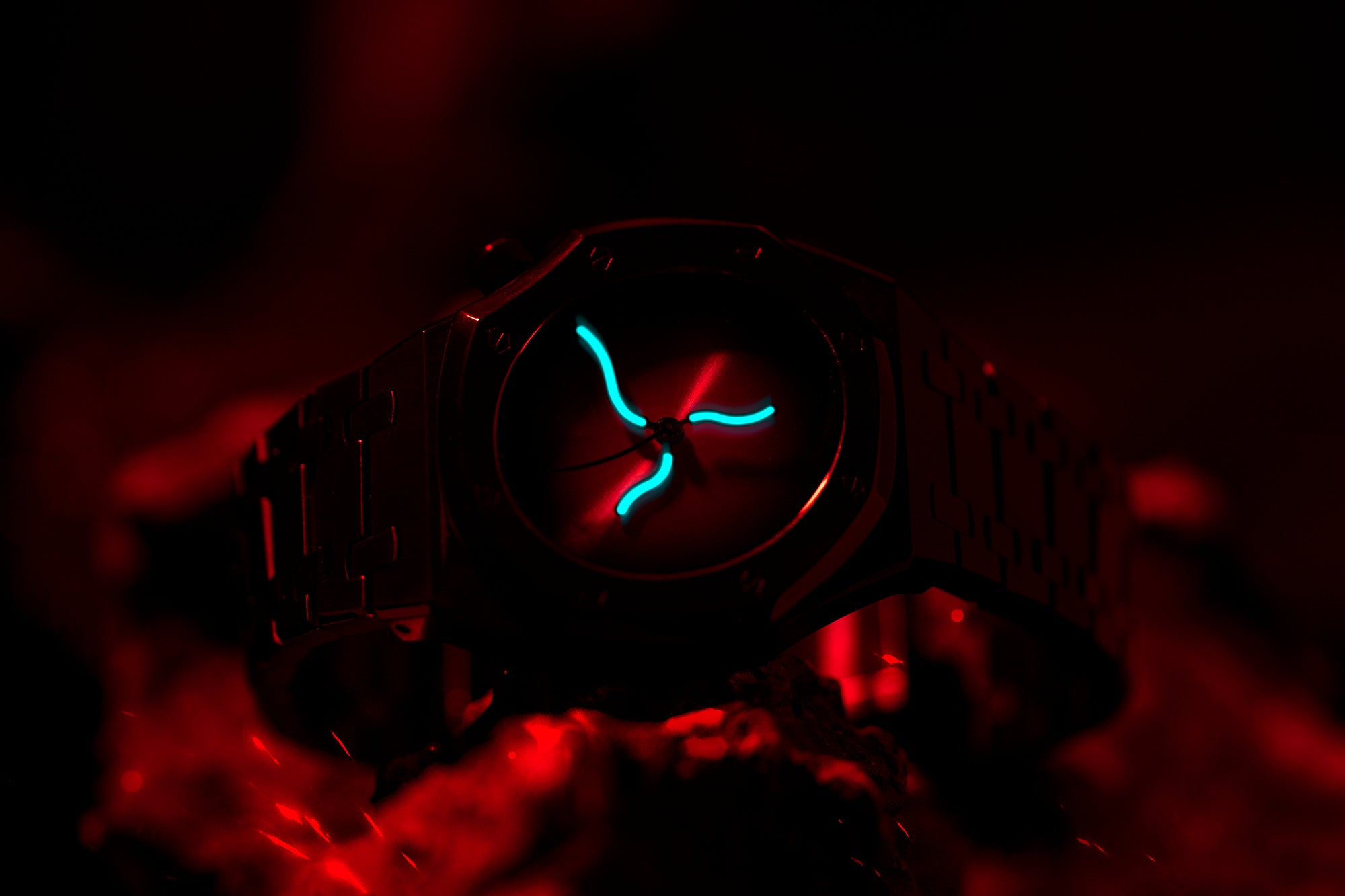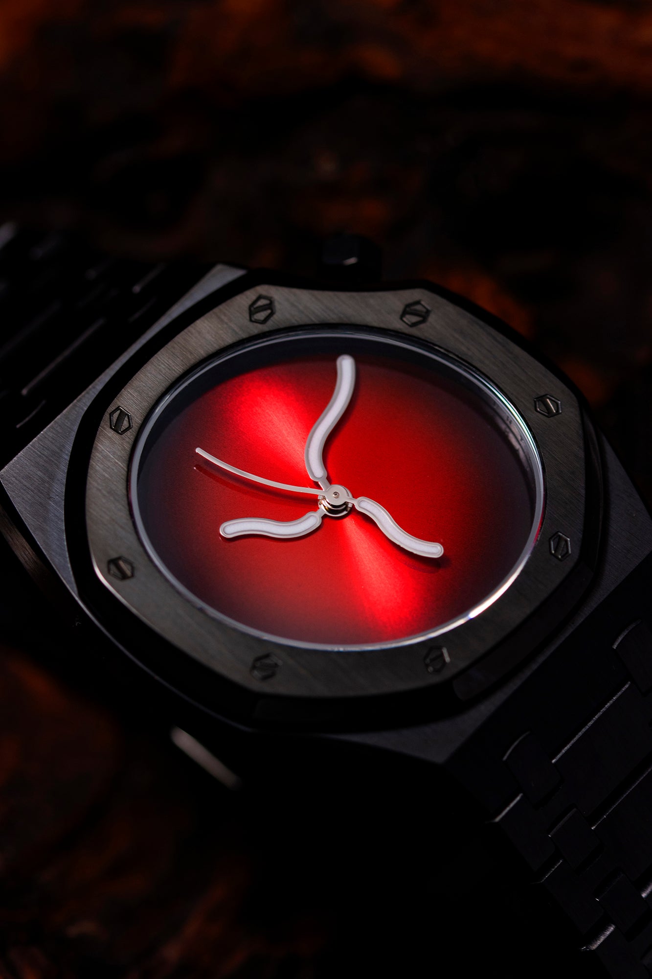 “曲线橡树” 的设计灵感源于自然界的流动性与人体美学的动态韵律,S型曲线作为自然界中广泛存在的形态( 如河流、藤蔓、人体脊柱),具有柔和、优雅且充满张力的美感。Safrezo破天荒地将S型扭曲金属表链、表盘与指针融为一体,通过将这种流动的曲线融入腕表结构,赋予时间载体以生命感和艺术性,传递“时间如水,流动不息”的哲学理念。